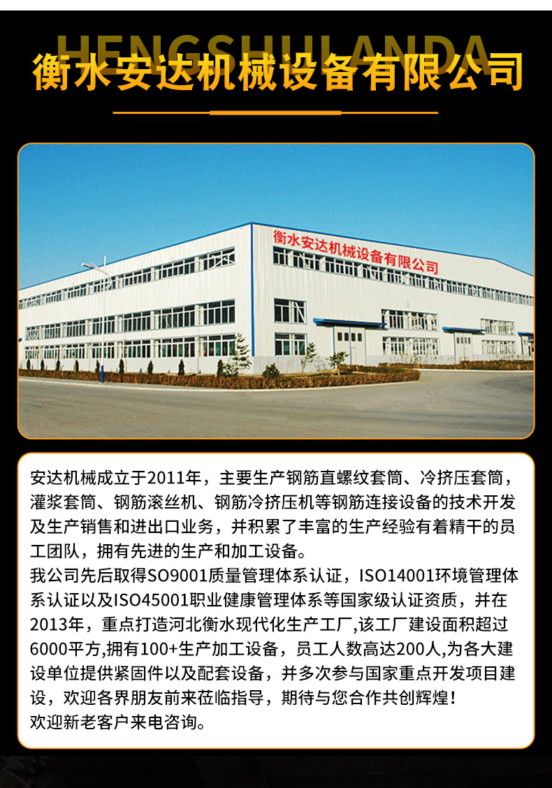 冷挤压钢筋套筒M16M18挤压式钢筋接头桥梁高铁用挤压接驳器