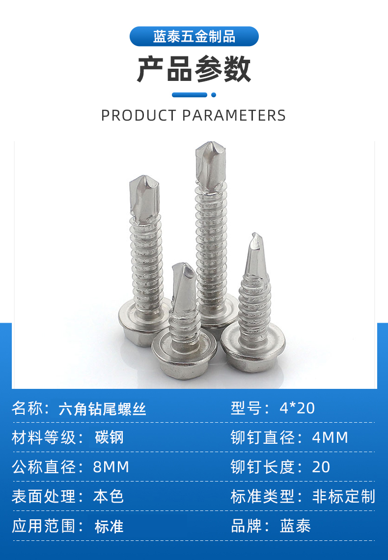 外六角自攻丝镀锌燕尾螺丝碳钢瓦钉钻尾钉M5.5六角钻尾螺丝