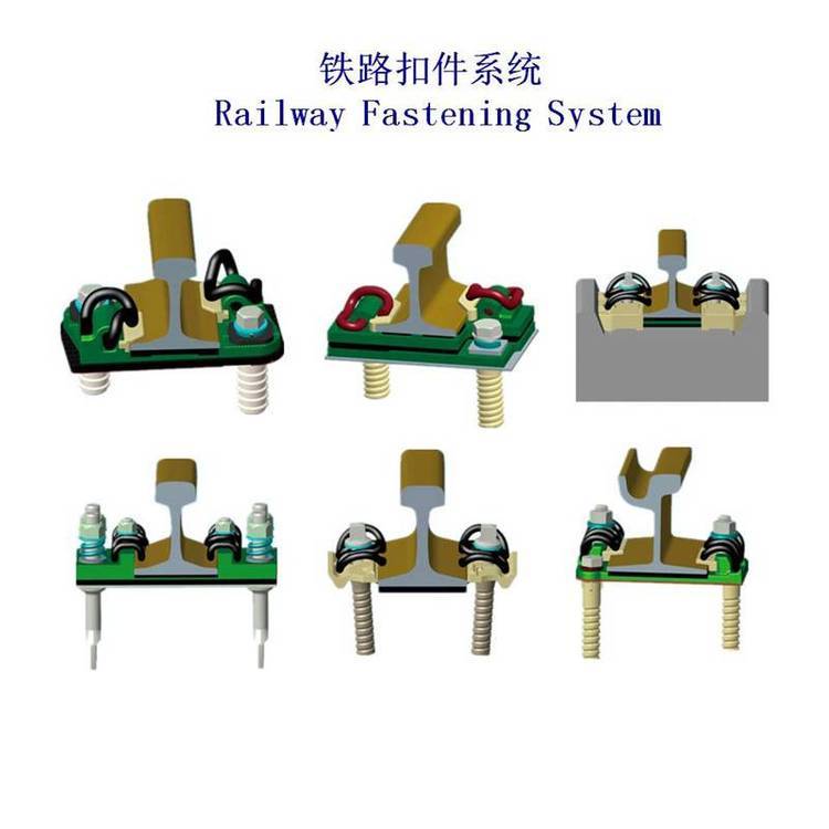 铁路钢轨扣件是轨道上用以联结钢轨和轨枕(或其他类型轨下基础)的零件,又称中间联结零件。其作用是将钢轨固定在轨枕上,保持轨距和阻止钢轨相对于轨枕的纵横向移动。铁路钢轨扣件系统分为:弹片扣件系统、扣板扣件系统、弹条扣件系统、道钉扣件系统。