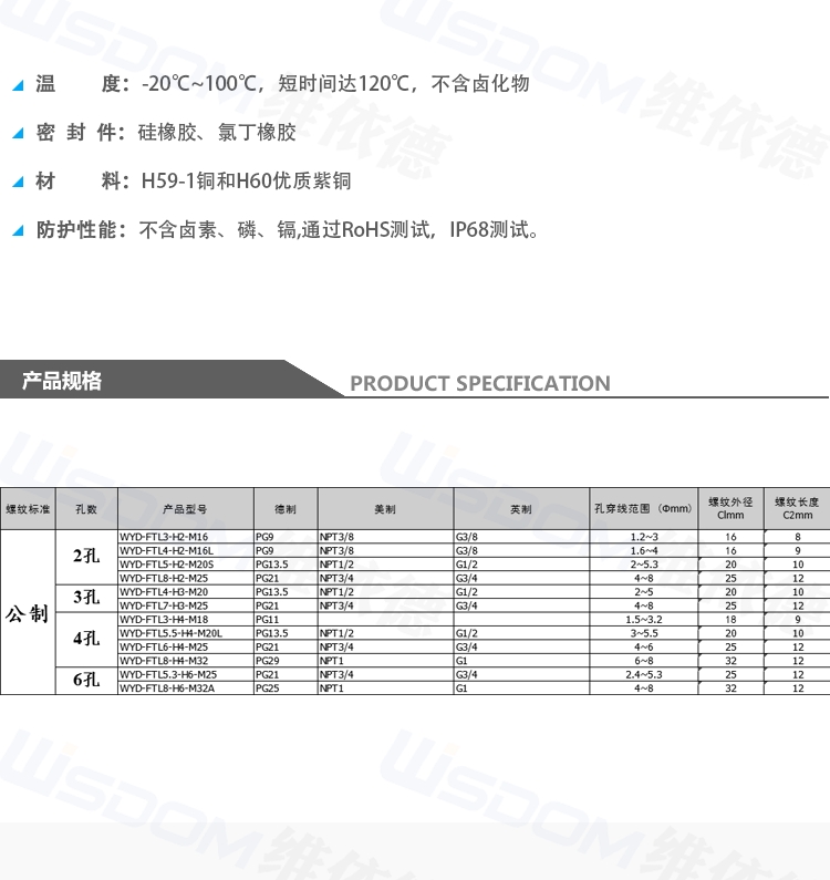 不锈钢电缆接头-昆山维依德配线器材有限公司,WISDOM品牌,亚洲地区的不锈钢防水接头制造商。