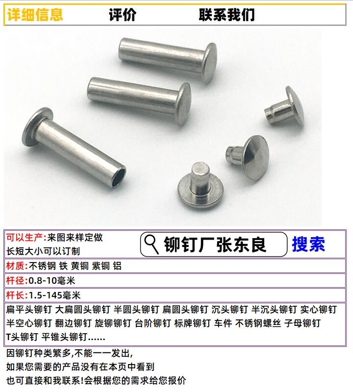 铝铆钉厂家平头圆头沉头实心半空心黄铜紫铜不锈钢铝铁台阶子母对敲铝合金张东良