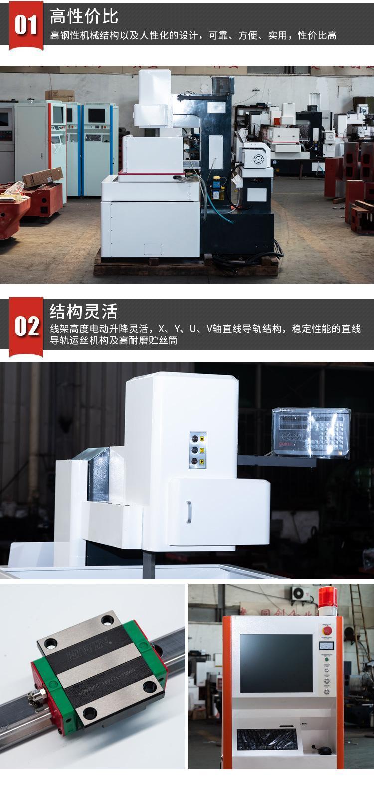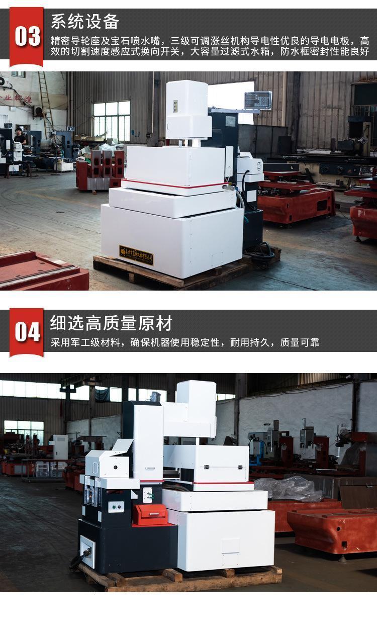 中走丝电火花线切割机,通过多次切割减少材料变形及钼丝损耗带来的误差,使加工质量也相对提高,加工质量可介于高速走丝机与低速走丝机之间。中走丝、慢走丝、快走丝都是指的电火花线切割机床。电火花线切割机(Wire cut Electrical Discharge Machining简称WEDM)。中走丝线切割机床(Medium-speed Wire cut Electrical Discharge Machining简写MS-WEDM),属往复高速走丝电火花线切割机床范畴,是在高速往复走丝电火花线切割机床上实现多次切割功能,被称为“中走丝线切割”。