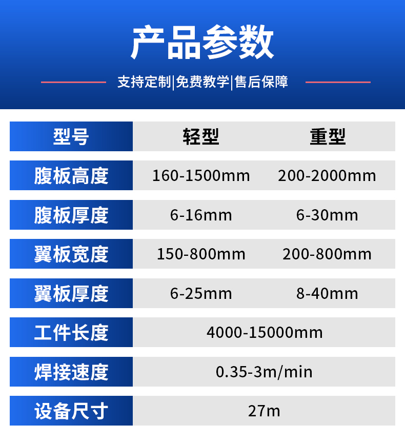 翼板宽度 | 160-800mm | ||