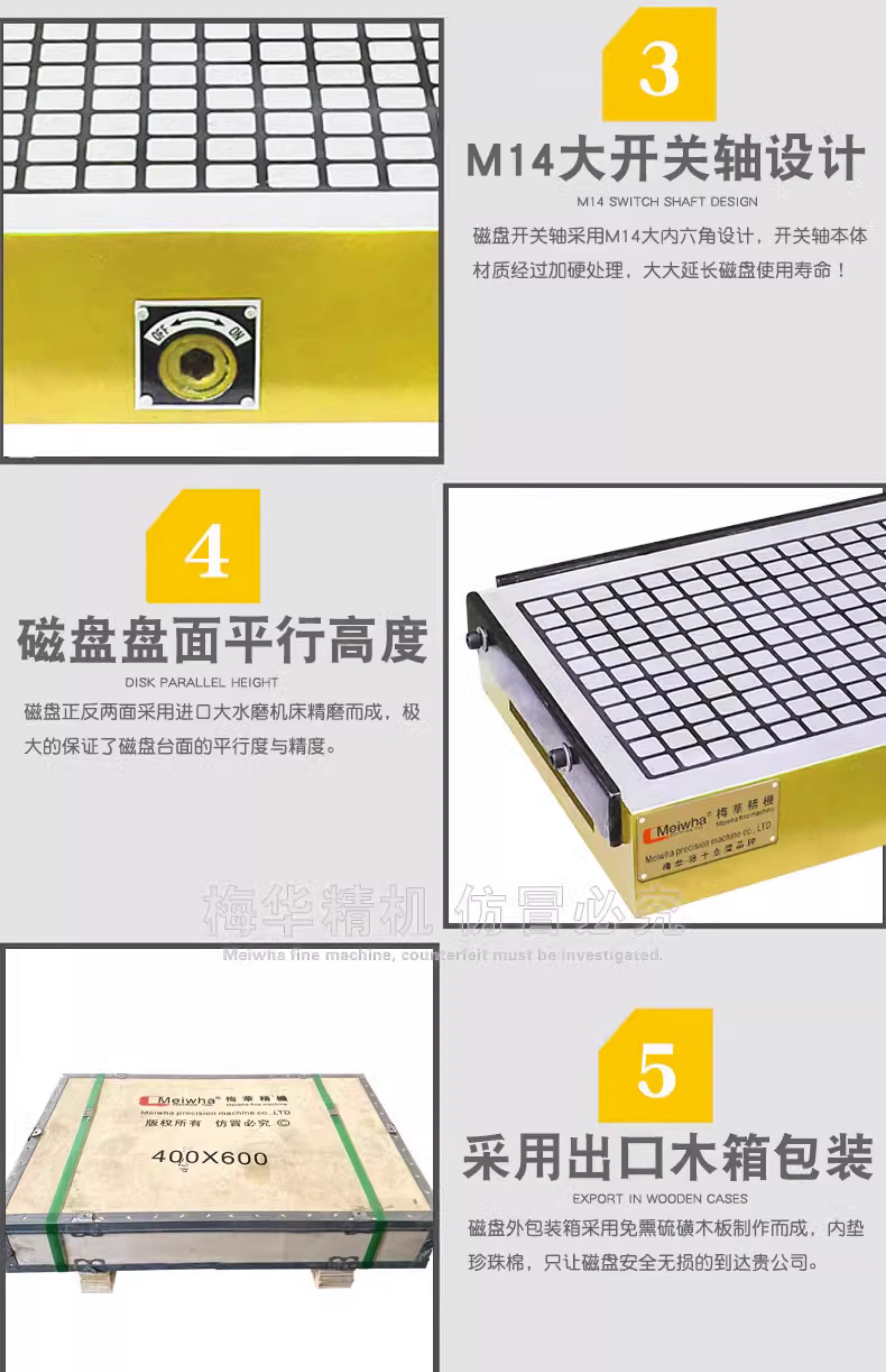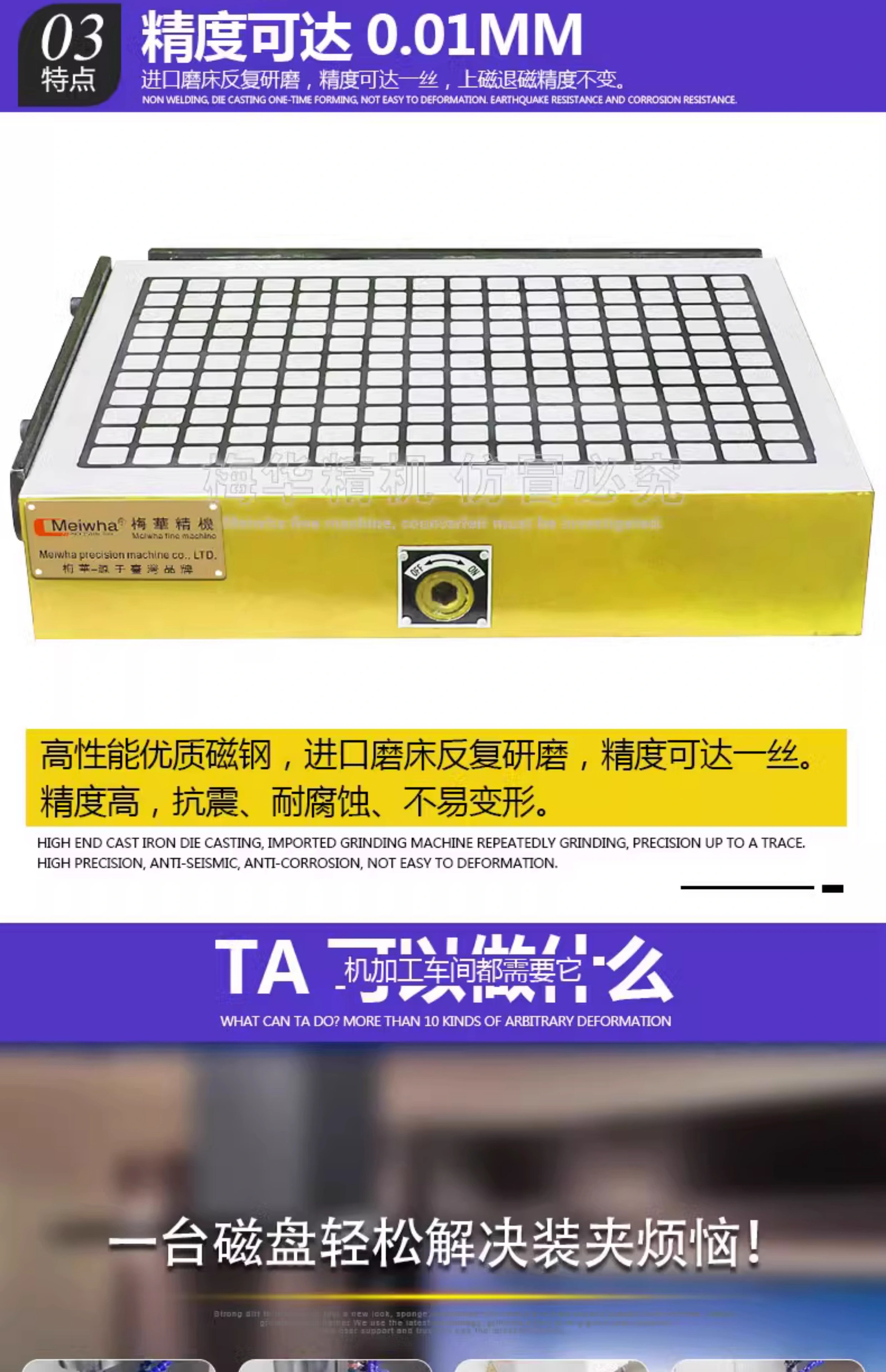 强力永磁吸盘生产厂CNC加工中心磨床铣床雕铣机方格磁台梅华机械