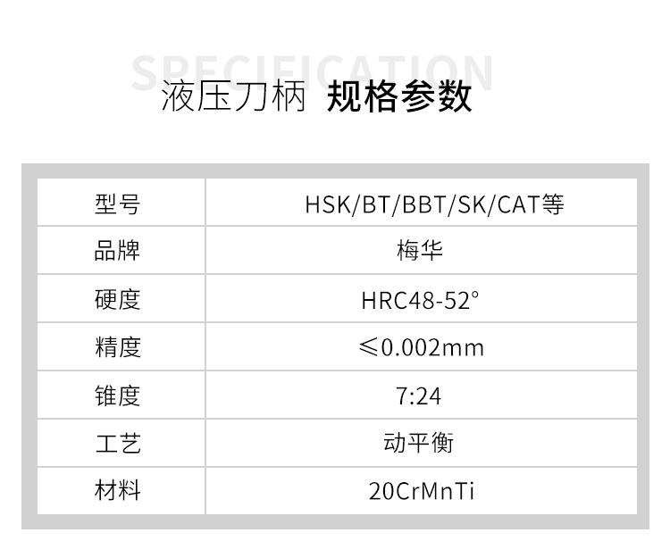 Meiwha/梅华液压刀柄加工中心CNC高精密BT40HSK63高速动平衡 是否支持加工定制 | 是 | ||