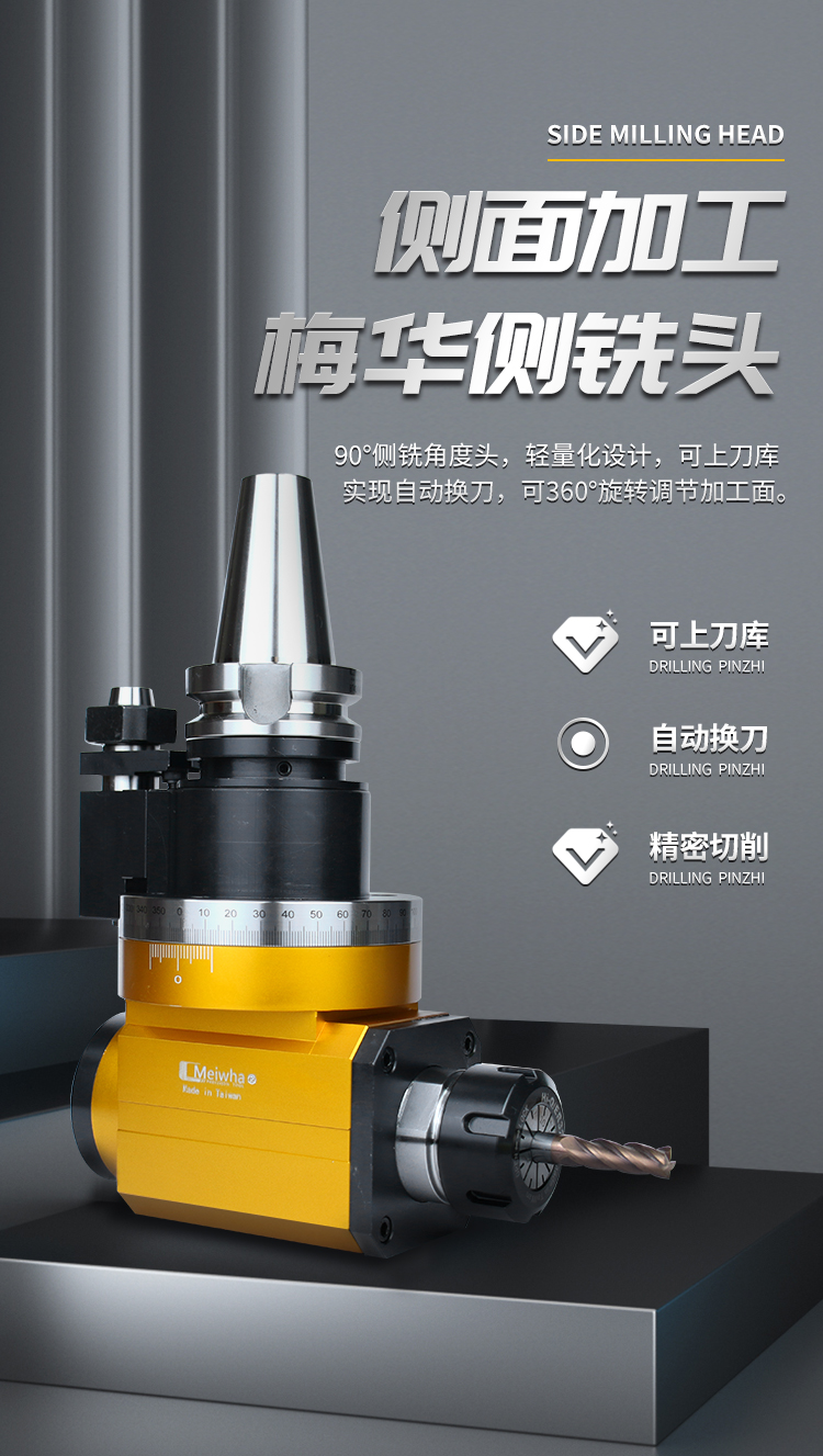 Meiwha/梅华CNC侧铣角度头BT40精密侧铣头90度直角加工中心铣头 是否支持加工定制 | 是 | ||