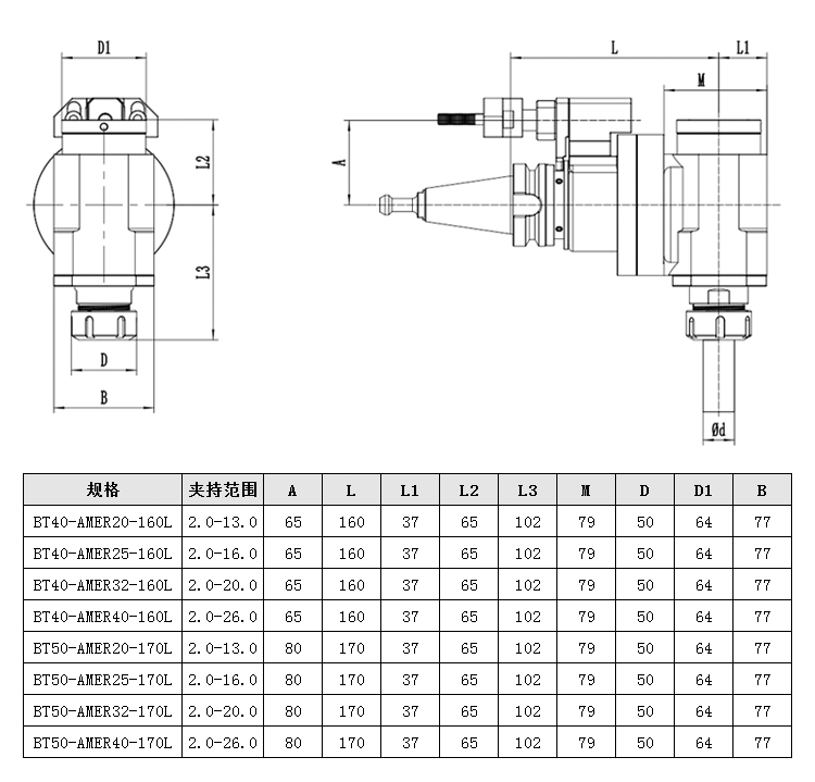 型号 | BT40-ER32-160L | ||