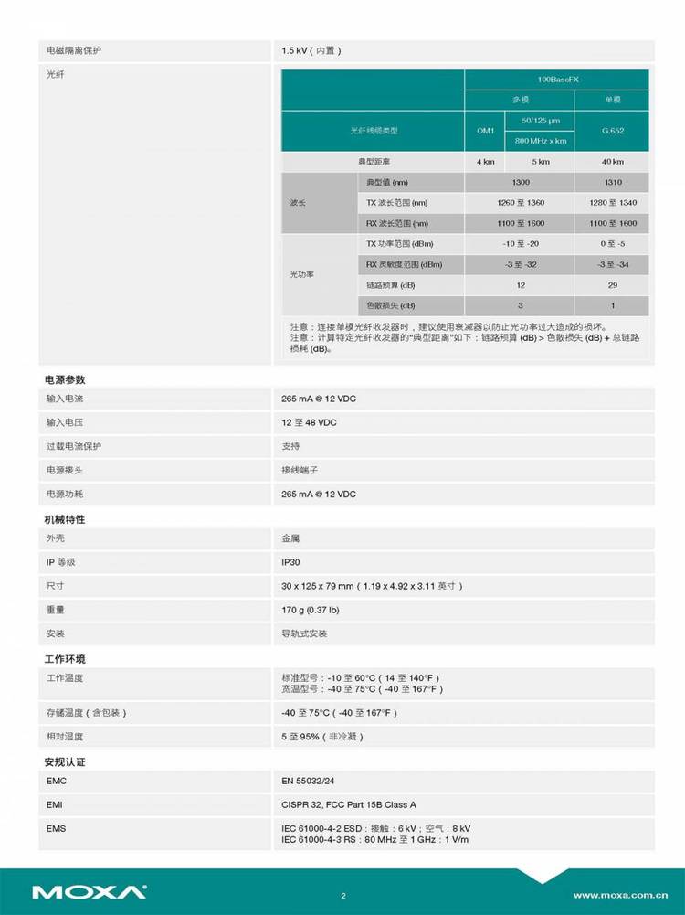 产品特性 | 光电转换器 | ||