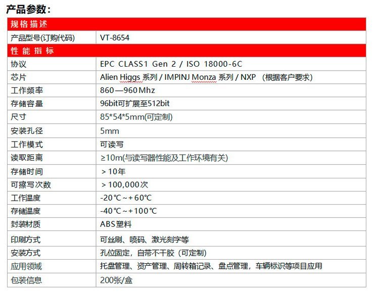 载波频率 | 超高频射频卡 | ||