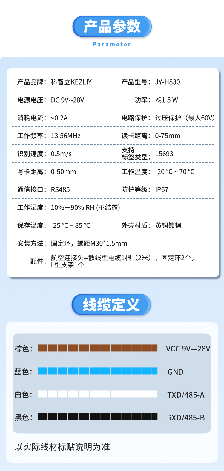 配件 | 航空连接头--散线型电缆1根(2米),固定环2个,L型支架1个 | ||