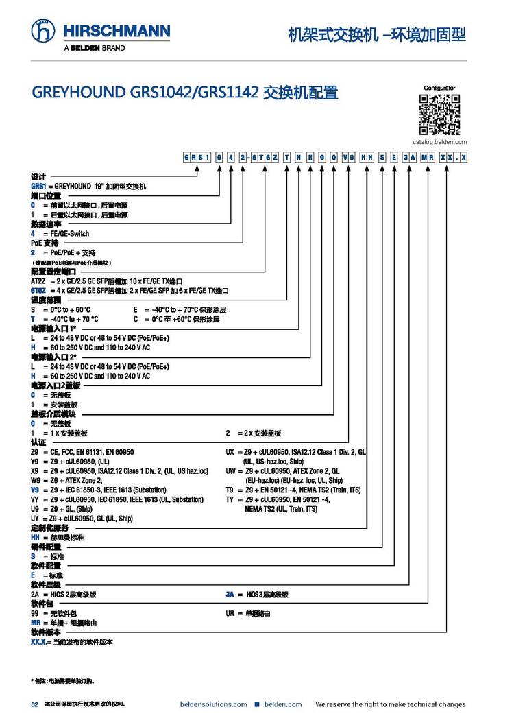 赫斯曼千兆交换机HirschmannGRS1042-6T6ZSHH00V9HHSE3AMR