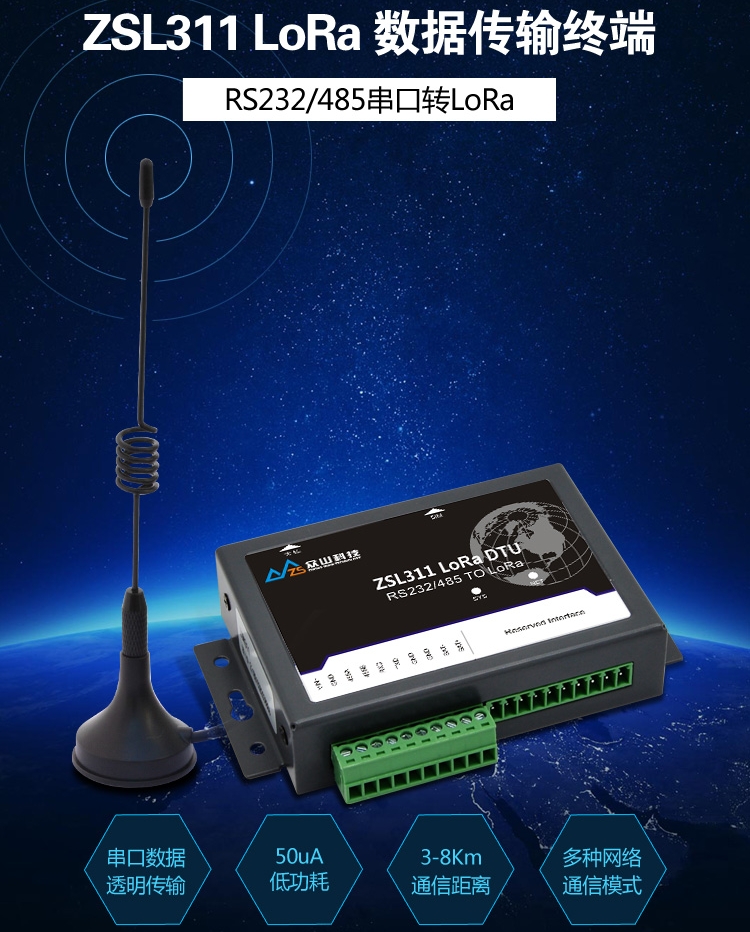 ? ? ? ? LORA串口无线数据透明传输终端ZSL311的功能特点描述: