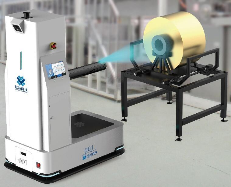 分条机上下料机器人搭载蓝芯科技自研的LX-MRDVS (包 含蓝芯科技自研的3D视觉传感器和深度视觉感知算法),可实现料卷全自动搬运和自动上下料作业,进一步提高锂电或印刷生产的自动化水平。