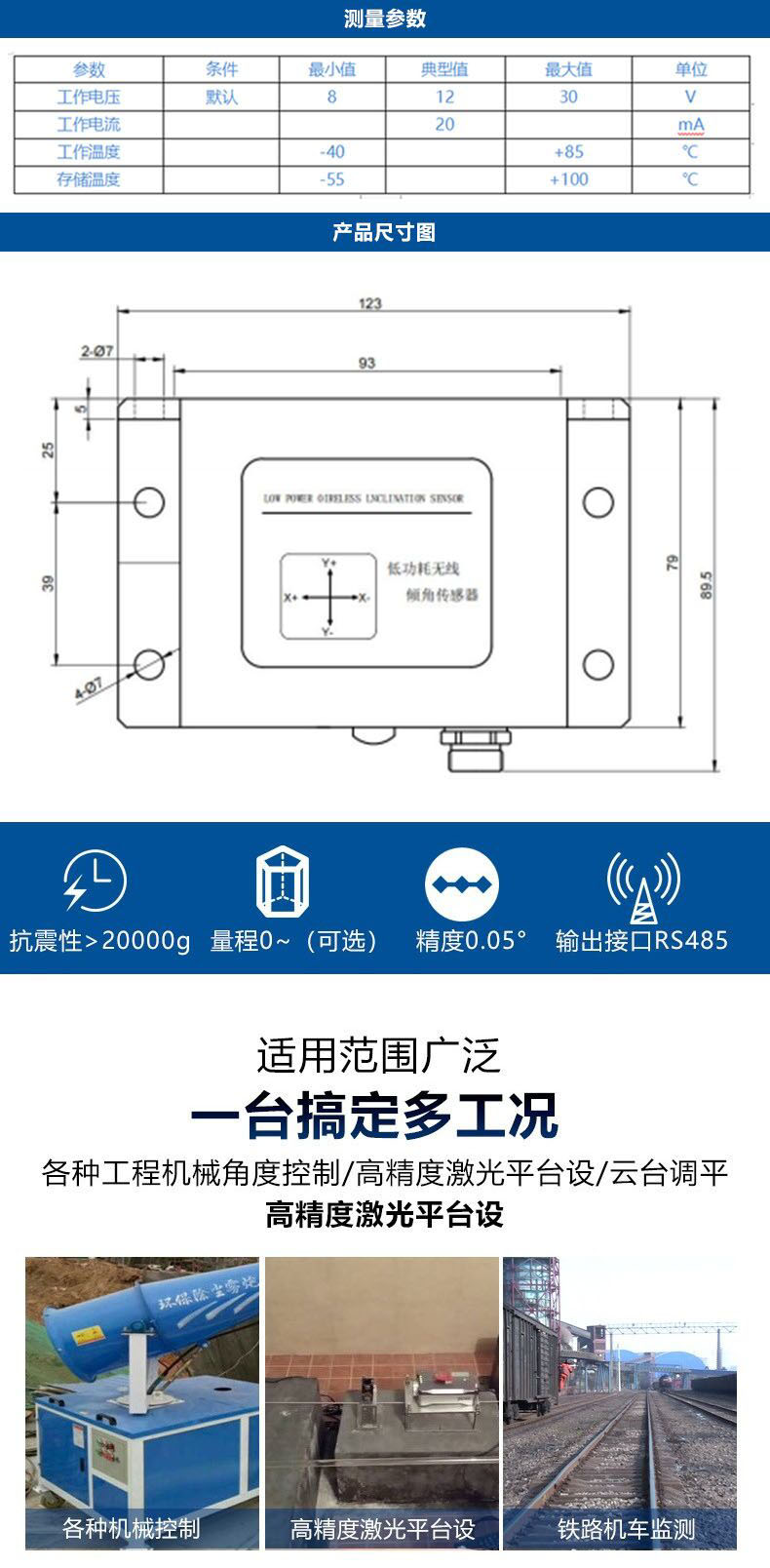 NB-LOT无线倾角传感器,4G GSM全网通无线倾角传感器,可联云平台监测