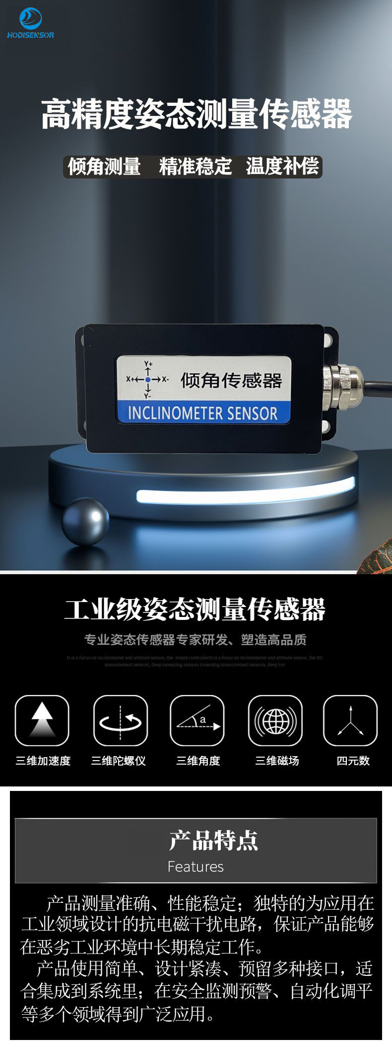 高精度三维陀螺仪,三轴倾角传感器,三轴角度传感器,三轴加速度传感器