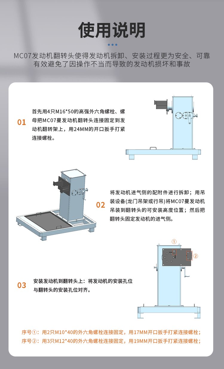功能用途 | 商用车专用型IC07发动机翻转 | ||
