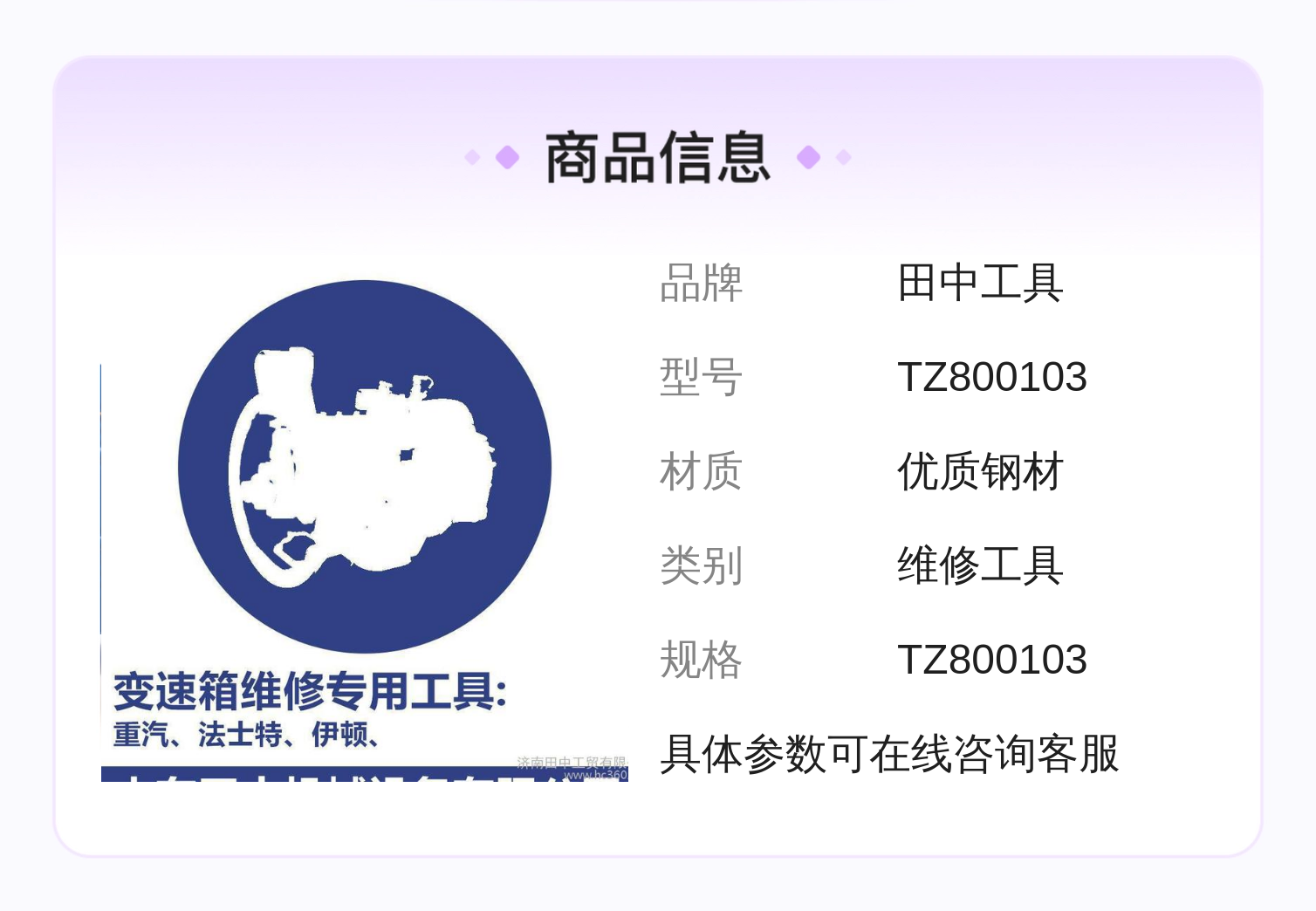 用途 | 发动机、变速箱等部位的维修专用工具 | ||