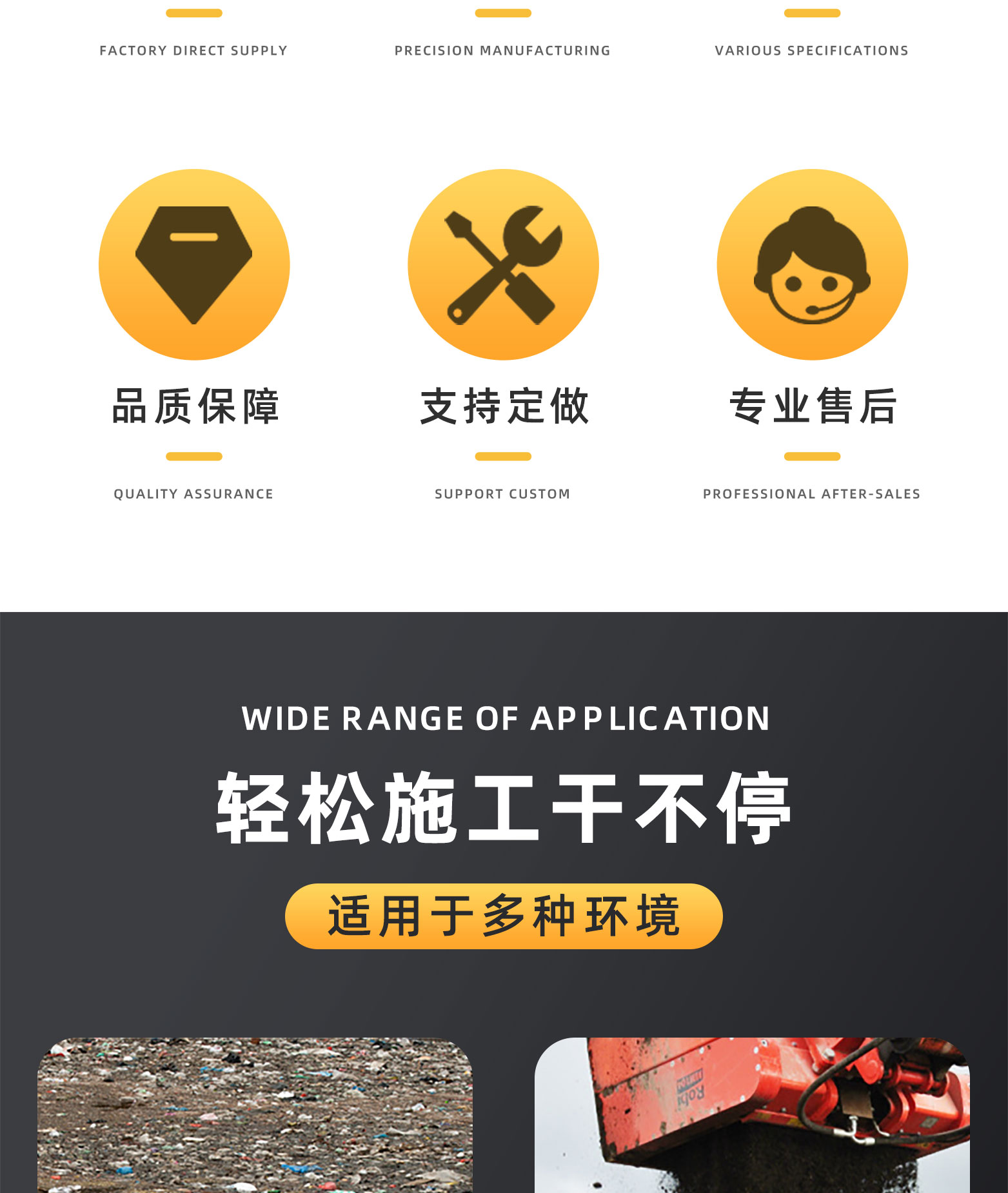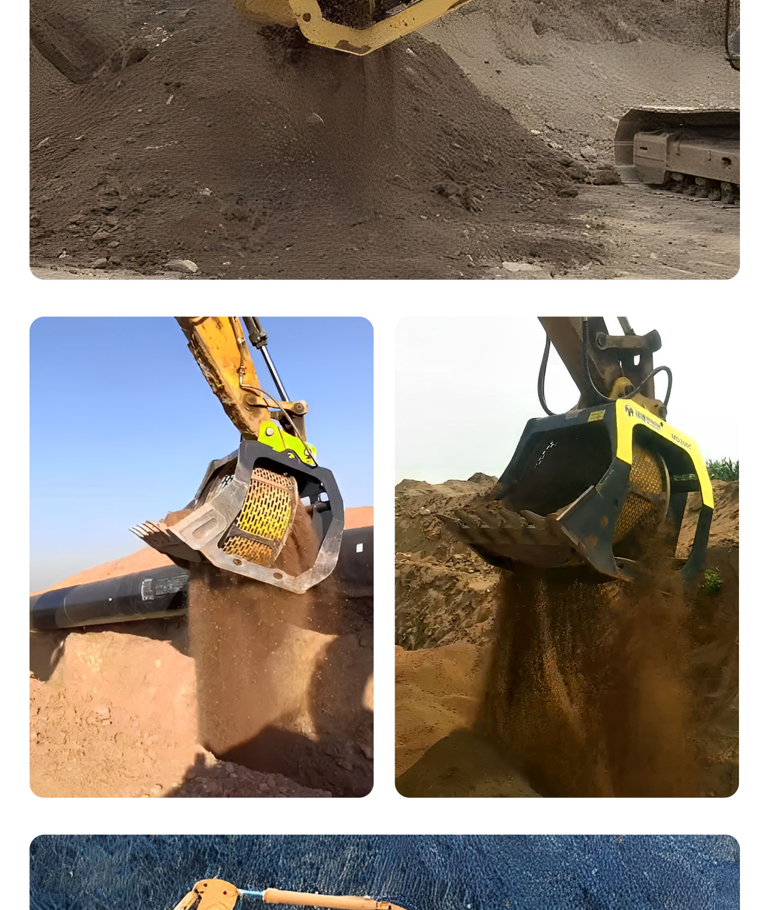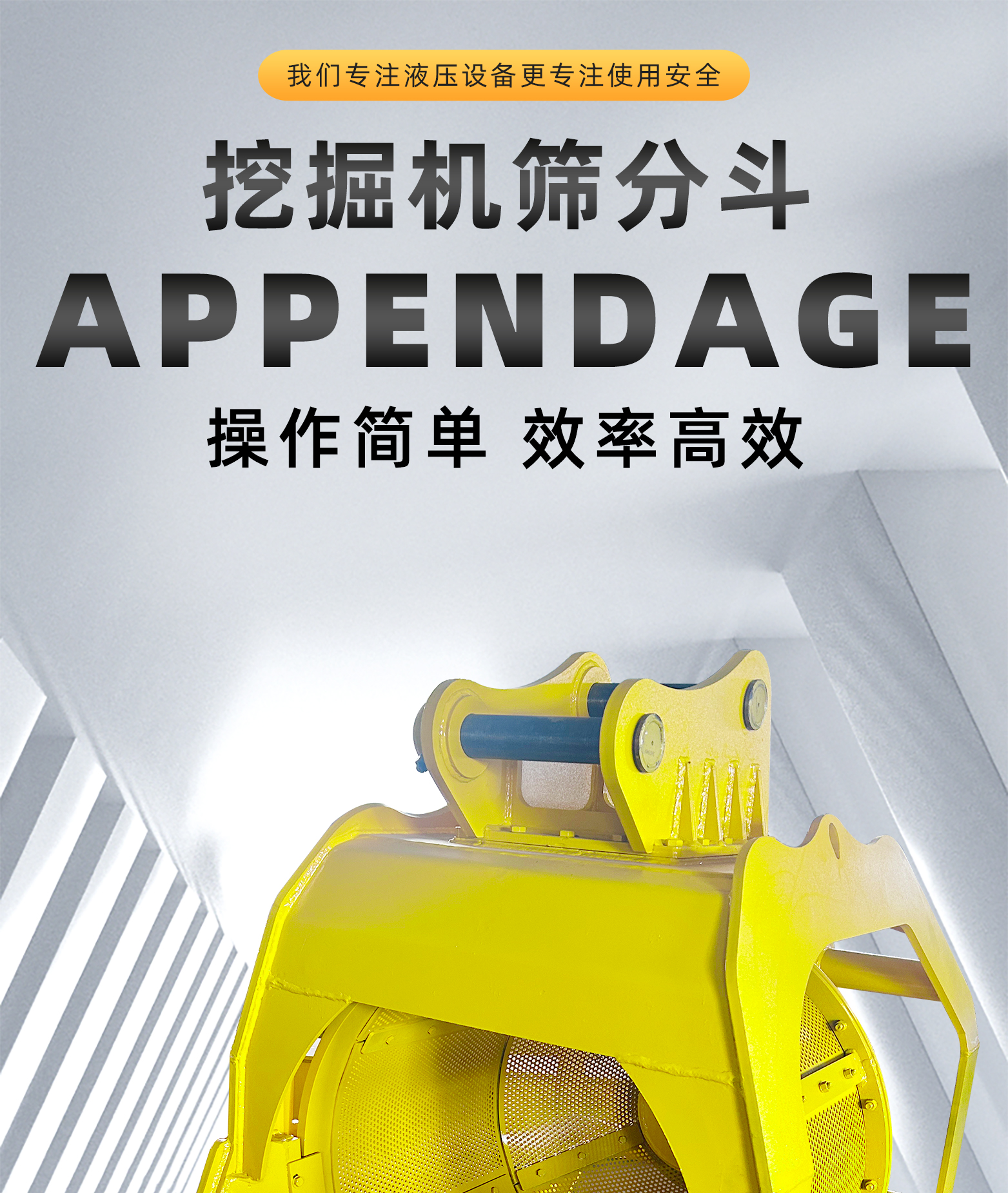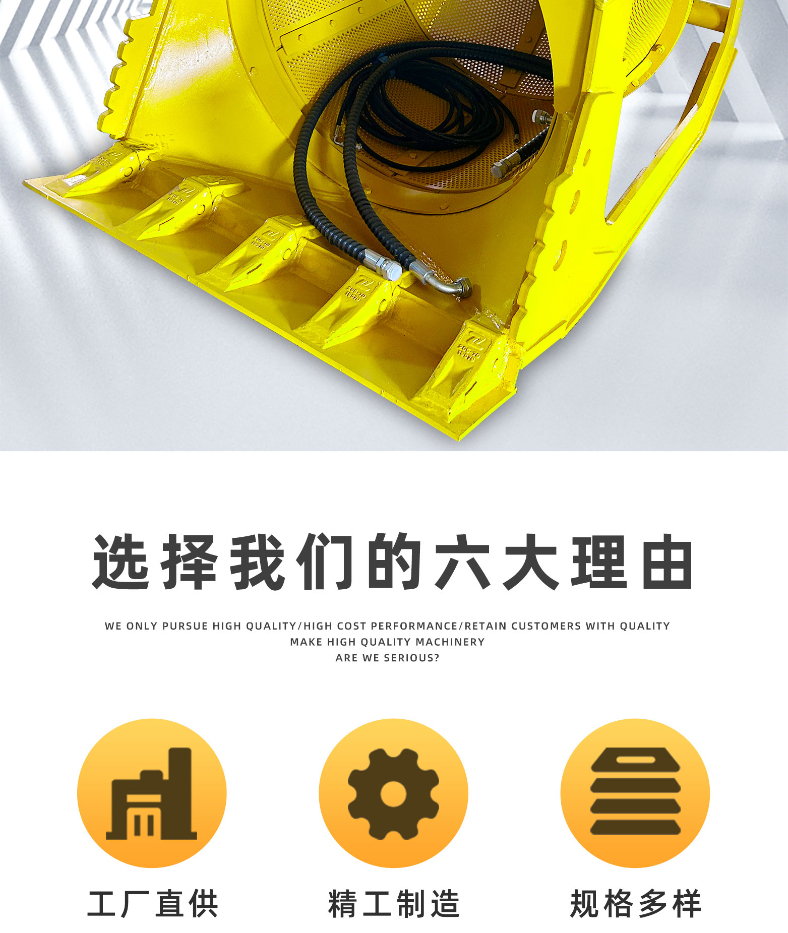 特点 | 液压滚筒式土壤筛分网斗 | ||