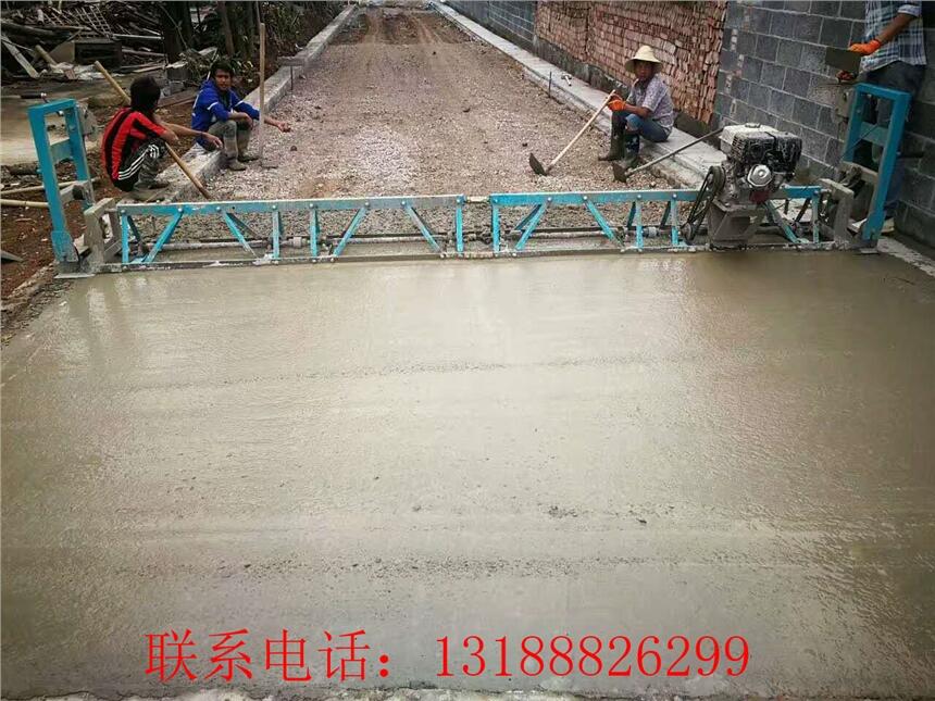 摊铺机使用汽油发动机作动力,无需其它外接动力源。汽油整平机整机振动力大而且均匀,振捣提浆充分。汽油摊铺机与传统的简易整平机相比,具有更高的施工效率和连续平整度,大大提高了混凝土的整体性,使得同样等级的混凝土具有更高的强度,能承受更大的负荷。**坚固的高强度钢制骨架及全镀锌的钢刮板,不会因振动而产生硬性变形,使用寿命更长。手摇绞轮控制整机行走,极易使用,操作者可轻松均匀地控制整平机的行进速度