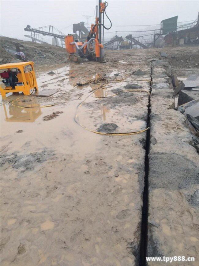 劈裂机先组装然后再检查看机器哪里没有准备好,准备好之后,开始用风钻打孔(必须是42的孔,因为如果孔小了机器在使用的时候不小心掉到孔里一个小石子,就有可能会把劈裂枪别断,如果打的孔大的话,有可能会把孔给撑破,达不到要分裂的效果),风钻打孔后,把劈裂枪插到孔里,然后正转90°打开机器,打开劈裂枪,由液压泵站开始工作,推动液压油到劈裂枪,劈裂枪头慢慢伸出,之后由劈裂孔为起点,开始向预定方向分裂,以此达到想要的劈裂效果,完成劈裂后,反转180°劈裂枪和液压泵站的开关,使枪头收回来,枪头收回来后,正转90°劈裂枪和液压泵站的开关,关闭液压劈裂机,这样就完成了一次劈裂。甘肃兰州市安宁区绿色环保拆除专家液压劈裂机厂家直销