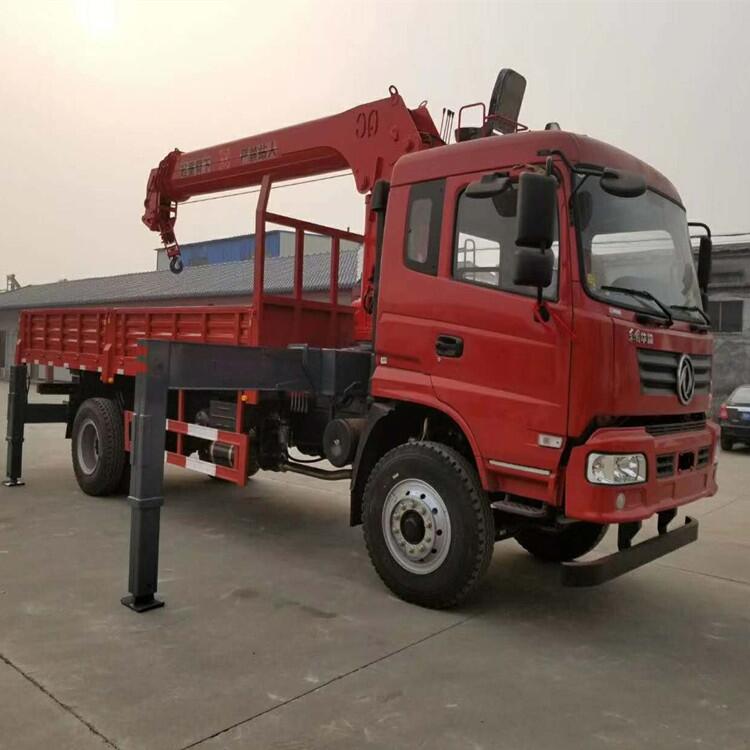 8吨随车吊采用东风4X2底盘,玉柴180马力,法士特小八档比变速箱,1000R20轮胎,5.7米货箱,4米4节内走绳大臂,四条加固支腿,可以加装自卸伸缩货箱。