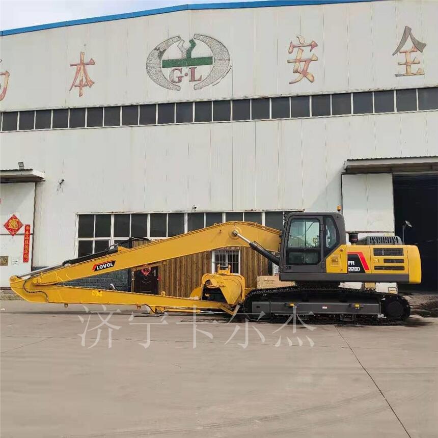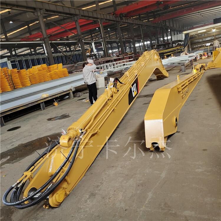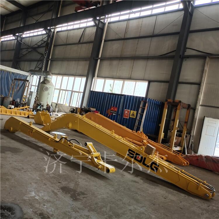 加长臂是为拖长挖掘机工作范围根据工况要求而设计制造的挖掘机前端工作装置。按其作业方式分为:拆楼式加长臂,深坑式加长臂,打桩式加长臂;按其段数分为:二段式加长臂,三段式加长臂,四段式加长臂;按其性能分为:固定式加长臂,滑移式加长臂,伸缩式加长臂等。