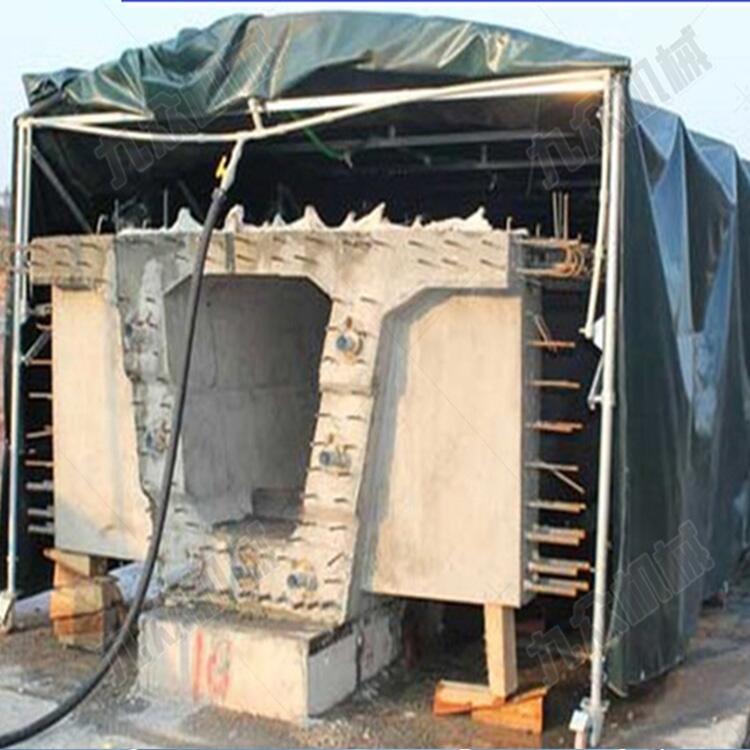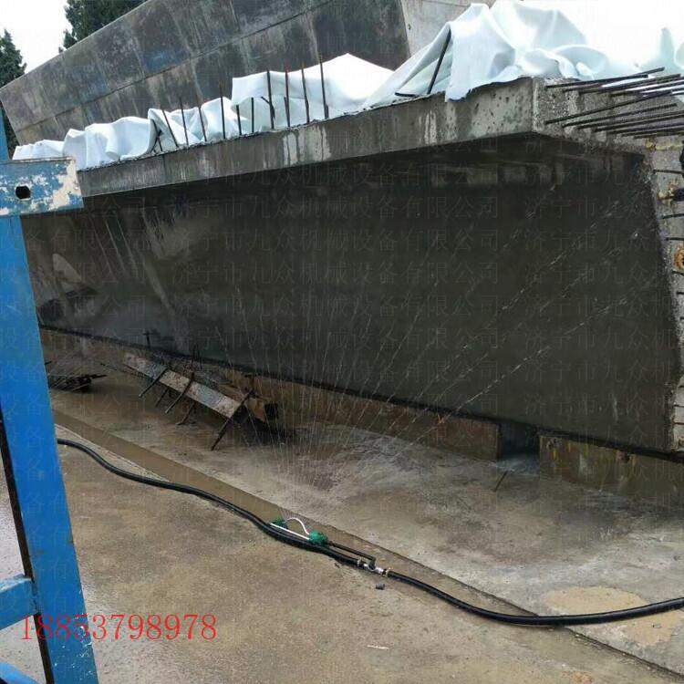 3.节约用水:工程建设讲究循环用水保护环境,合理使用水资源,节约用水,达到了施工循环用水保护环境的目的。全自动预制箱梁喷淋养护设备自动卷线功能国内目前便捷和常用的箱梁养生方法多为人工浇水养生,因受操作者的质量意识和工作态度影响,时常出现部分区域漏养、养护时间不足、养护方法不对等等问题。且箱梁腹板向内倾斜,传统覆盖养生没办法使用,使得喷上去的水挥发极快,使箱梁腹板、翼板易产生裂纹,为满足西商高速公路当前的预制梁板规模化、生产工厂化及质量需要,从草坪养护喷淋系统得到的灵感,通过前期的考察,从研制到投入生产,经过多次试验,不断总结,形成自动喷淋养生系统。