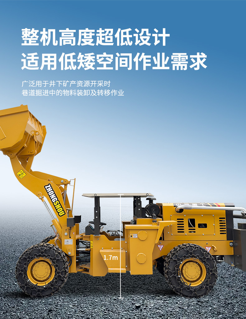 窄体矿井装载机是一种专门用于井下狭窄空间作业的装载机,以下是其相关介绍: