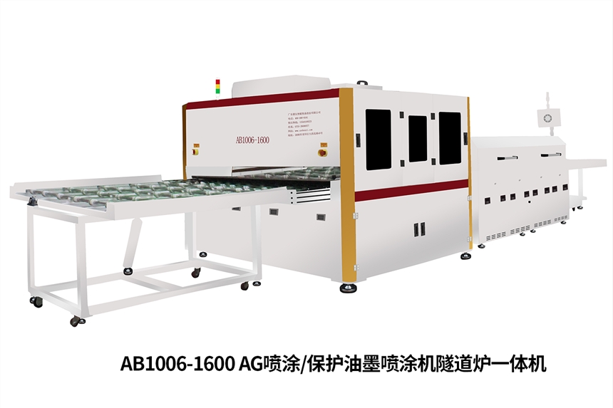 2. 保护油喷:此设备配备了高精度雾化喷枪+差补喷涂运动轨涂设备具有恒温预热功能有效保持玻璃表面温度均匀稳定性,能充分促使喷涂的保护油墨有效结合,在玻璃表面形成均匀保护纳米涂层,有效提高了开料、CNC、扫光等生产过程中机械损伤,避免了人为刮伤、底座印迹;同时涂层清洗简单方便快捷无残留,无残渣。