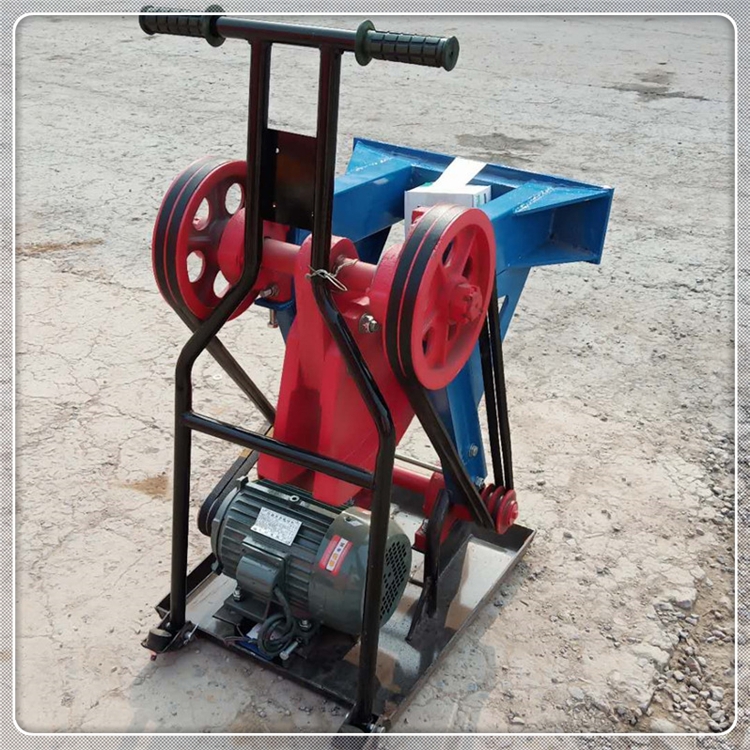 蛙式打夯机利用旋转惯性力的原理制成,由夯锤、夯架、偏心块、皮带轮和电动机等组成。电动机及传动部分装在橇座上,夯架后端与传动轴铰接,在偏心块离心力作用下,夯架可绕此轴上下摆动。夯架前端装有夯锤,当夯架向下方摆动时就夯击土壤,向上方摆动时使橇座前移。因此,蛙夯夯锤每冲击,机身即向前移动一步。