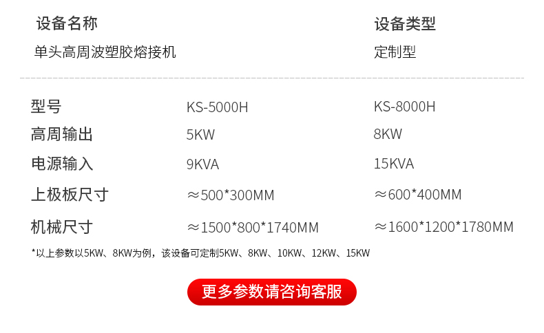 小型塑料热合机单头台面式高周波塑胶熔接机5/8/10kw高频机设备 型号 | KS-5000H | ||