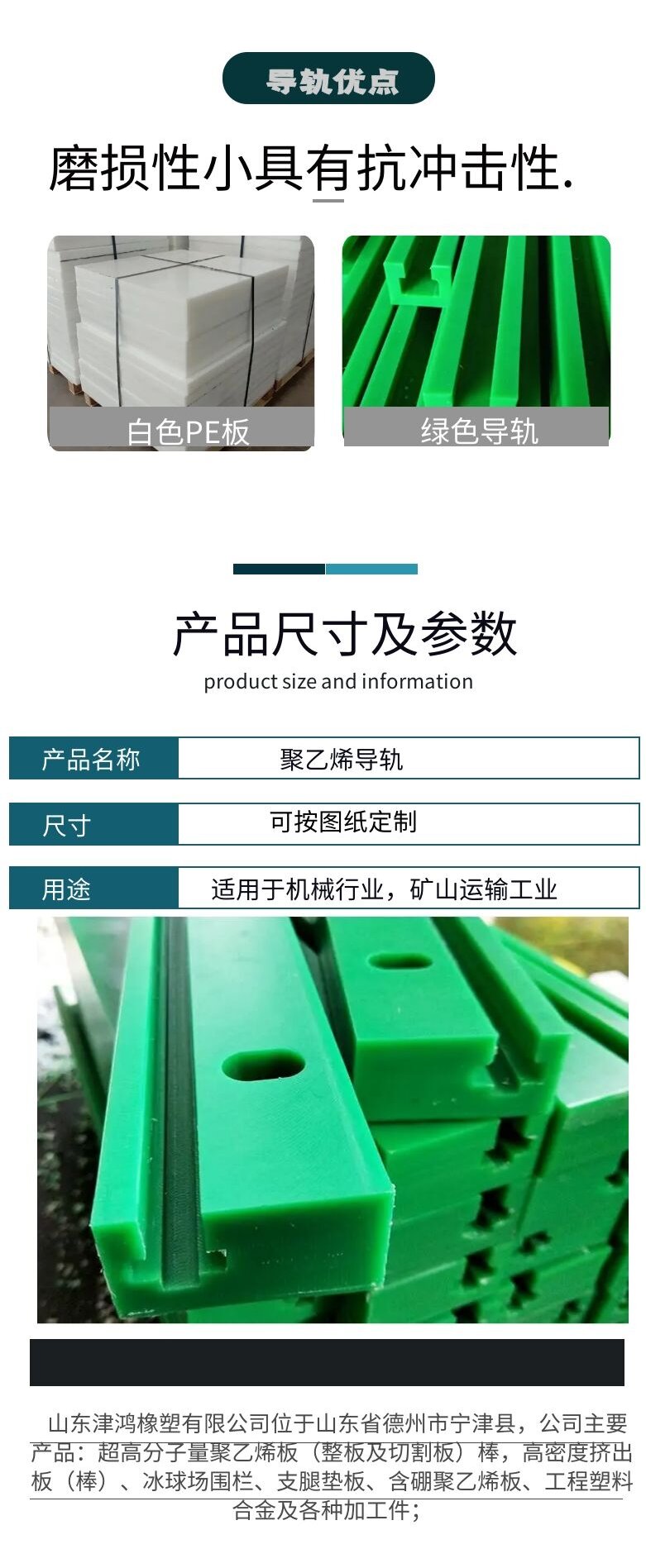 津鸿高分子量聚乙烯耐磨滑条导轨按规格尺寸定制绿色UHMWPE耐磨条
