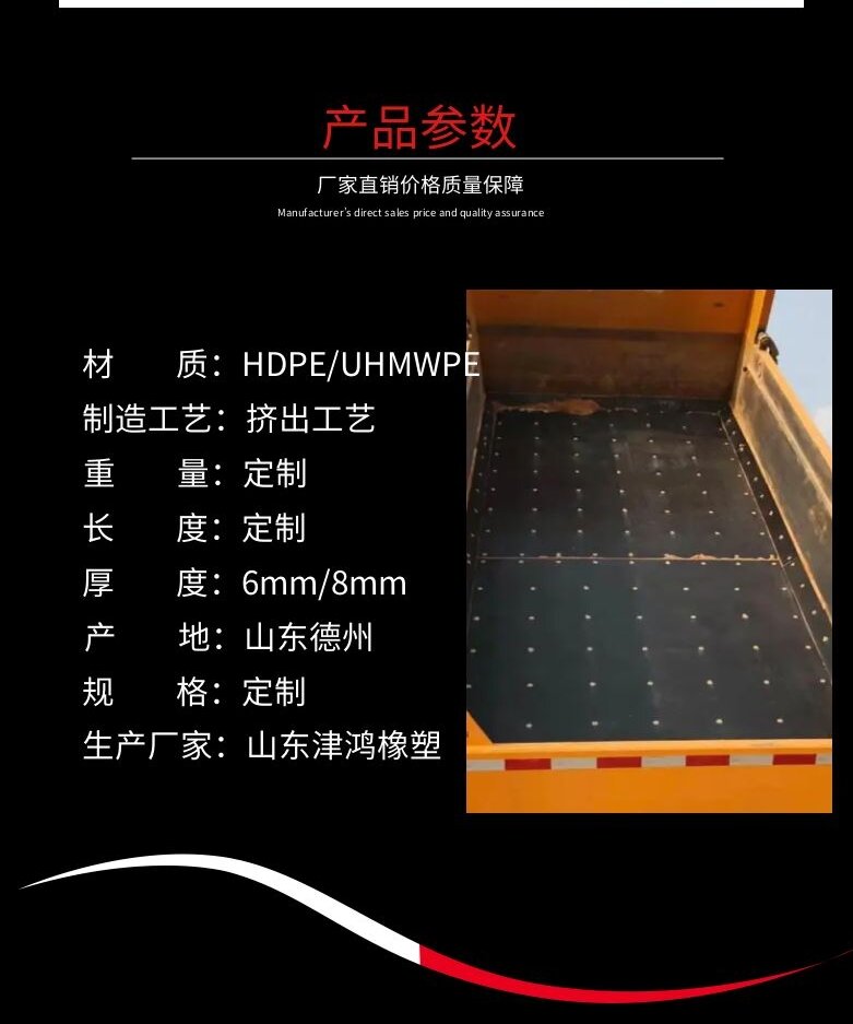 津鸿聚乙烯材质渣土车车厢衬板耐磨自润滑HDPE车厢滑板厚度可定制