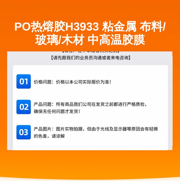 PO热熔胶H3933 粘金属 布料/玻璃/木材 中高温胶膜 品牌 | 友信新材料 | ||