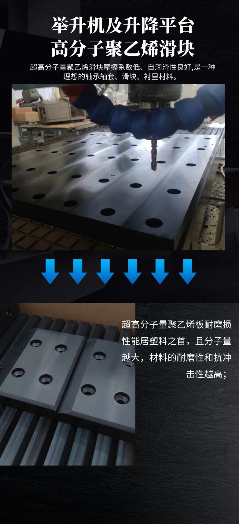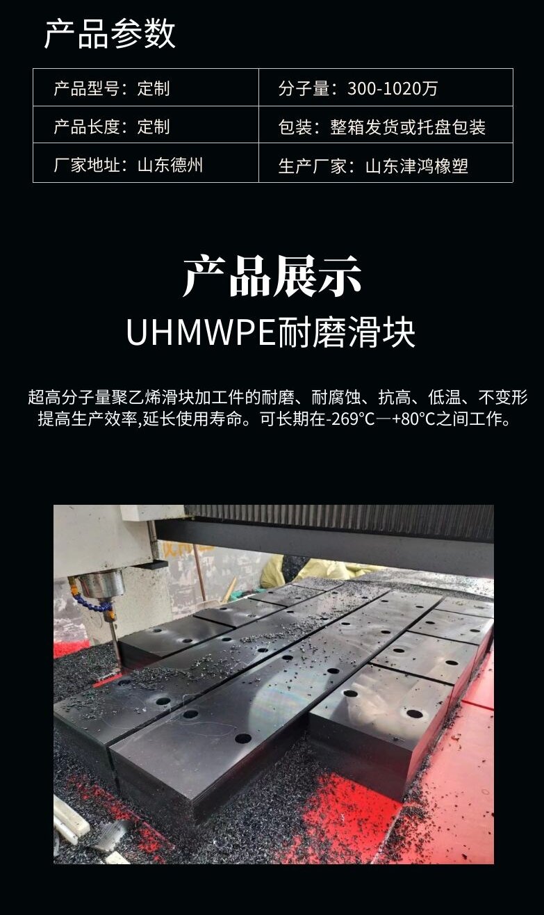 津鸿工业用高分子量聚乙烯抗磨块机械设备专用UHMWPE阻燃耐磨件