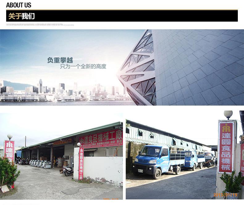 台湾达圆公司创立于1983年,董事长蔡东霖先生三十多年来不只在经营企业上战战兢兢,更致力于技术研发上不遗余力。在一切皆讲求快速、的时代里,企业要赶上潮流必须扩充产能及加速技术升级,才能在这个市场中占有一席之地。本公司进行发展产品多元化及导入自动化作业,在一次又一次因应客户特殊需求中,不断改善生产品质及提升技术等级。提供餐饮业节省人工并大幅提升经济效益之食品加工设备,客户遍及海内外。