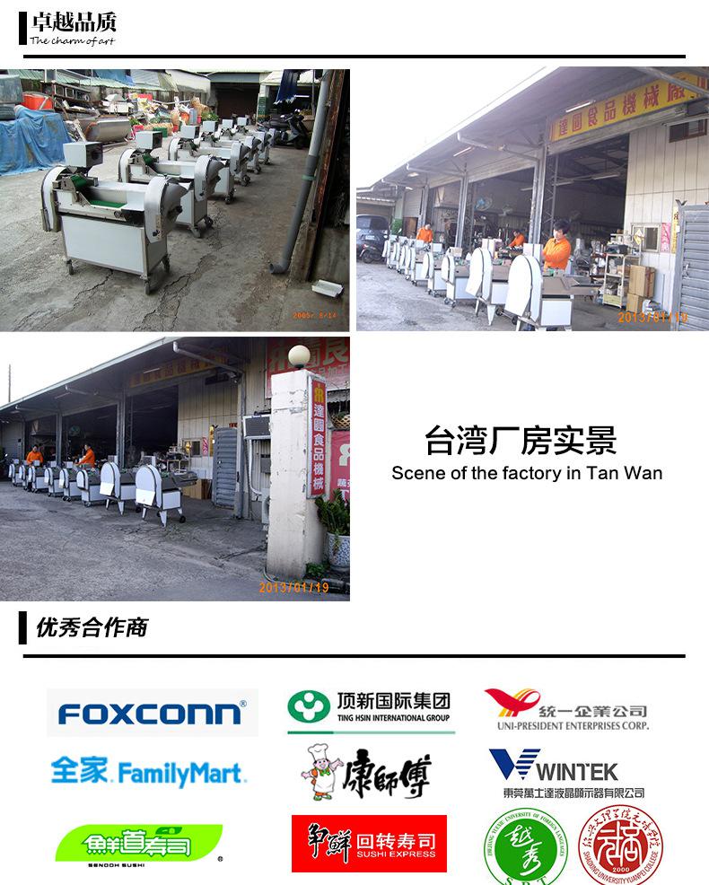 台湾达圆公司创立于1983年,董事长蔡东霖先生三十多年来不只在经营企业上战战兢兢,更致力于技术研发上不遗余力。在一切皆讲求快速、的时代里,企业要赶上潮流必须扩充产能及加速技术升级,才能在这个市场中占有一席之地。本公司进行发展产品多元化及导入自动化作业,在一次又一次因应客户特殊需求中,不断改善生产品质及提升技术等级。提供餐饮业节省人工并大幅提升经济效益之食品加工设备,客户遍及海内外。