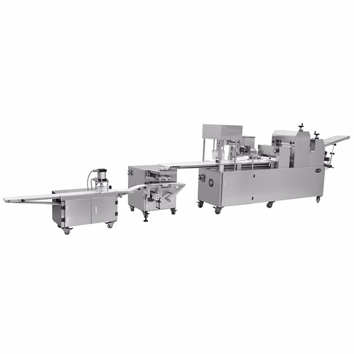 产品特点:三道擀面酥饼成型机组在slbf-250酥饼机组基础上提升改进而成,广泛适用于东北酥饼、各类酥饼、绿豆饼、老婆饼、肉松饼、糕点等中式点心及汉堡、夹心面包等西式面点。面皮装置的辗压延展,使面皮更有光泽品质更加稳固定。根据需要可选配加馅机、捏花机。整机元器件采用国际知名品牌。