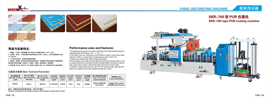 2.,专用于装饰护墙板,铝材,塑性材等的表面包覆贴PVC薄膜及三聚氰胺纸,人造木皮,实木皮。