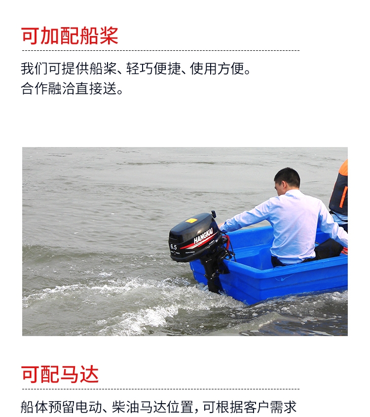 批发塑料渔船价格,都是工厂直售价,量大还有优惠,还能定制颜色、印字等。未详尽事宜欢迎洽谈,另有更多型号规格的塑料渔船供您选择,希望能帮您找到适合您的产品!