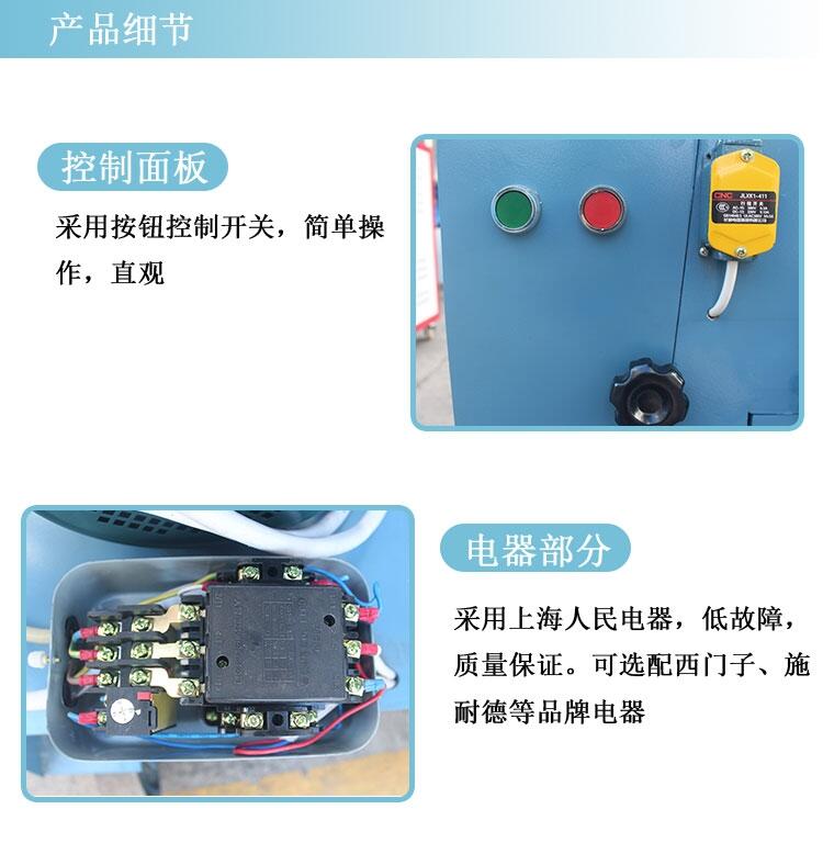 9、小机加装脚轮,移动方便。大型机加装可调避震脚,工作平稳。