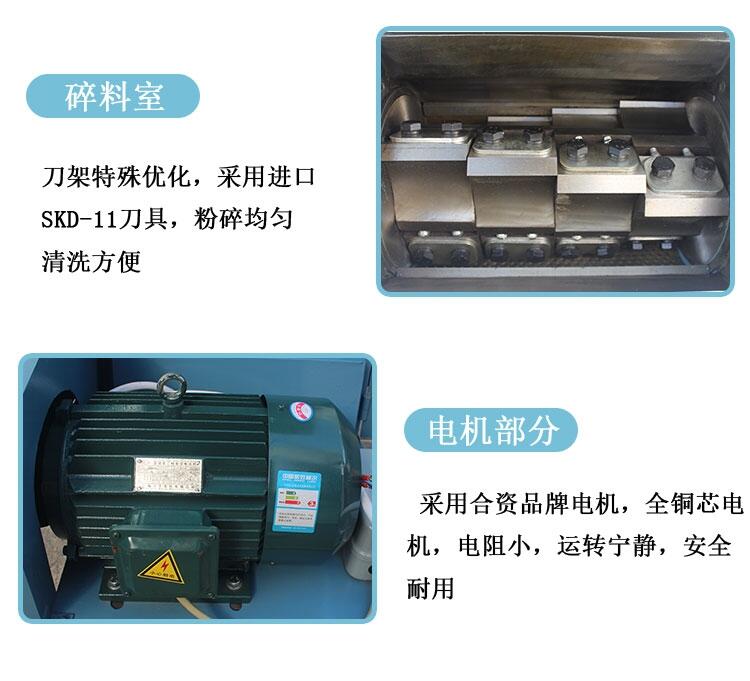 7、人性化设计,落料斗,粉碎室筛网板气缸升降、拆装方便。
