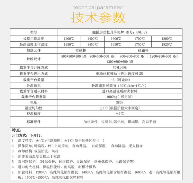发热元件 | 电阻丝、硅碳棒、硅钼棒 | ||