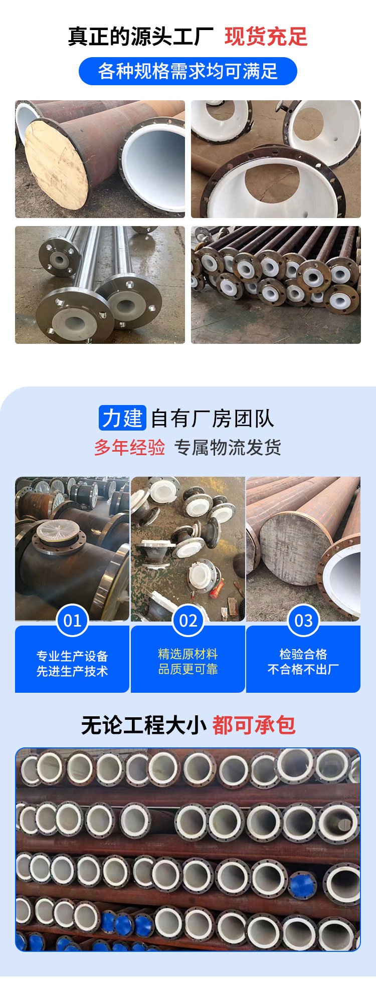 加工定制钢衬四氟管道衬塑钢管内外衬四氟管件
