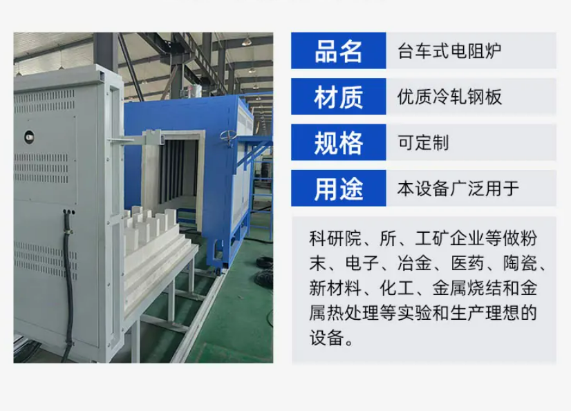 此款1400度小型台车炉为节能型周期式作业炉,超节能结构,采用复合纤维保温,超轻质高强度微珠真空球节能砖,炉口防工件撞击砖,密封性能好,台车和炉门,一体化连轨,不需基础安装,放在水平地面即可使用。主要用于高铬、高锰钢铸件、灰口铸铁件、球墨铸铁件、轧辊、钢球、破碎机锤头、耐磨衬板淬火、退火、时效以及各种机械零件热处理之用。