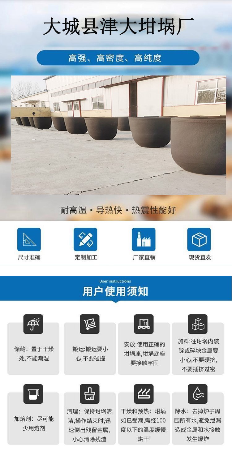 石墨黏土坩埚600kg熔铝熔铜中冀金钢高温石墨坩埚