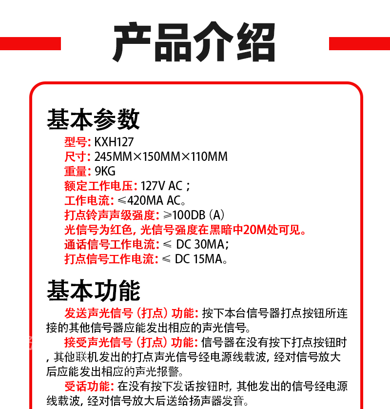 通话信号工作电流 | ≤ DC 30mA | ||