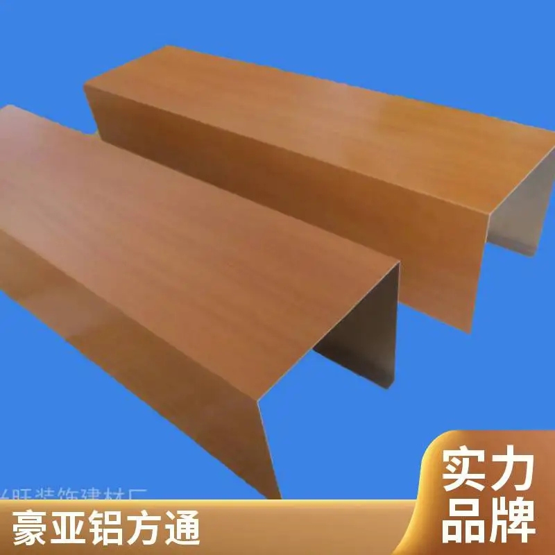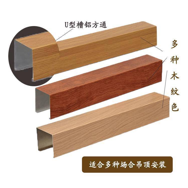 型材铝方通和木纹铝方通由特殊的铝材通风挤压成型,产品硬度,直线度远远超过其它产品,安装结构为利用上层50#C槽为主骨,以螺丝和特造的构件与型材锤片连接,防风性强,适用于户外装饰(龙骨间距可任意调节),表面处理多样,颜色可定制,同时,也可以订做木纹铝方通,大理石纹铝方通,镀铜铝方通等等。