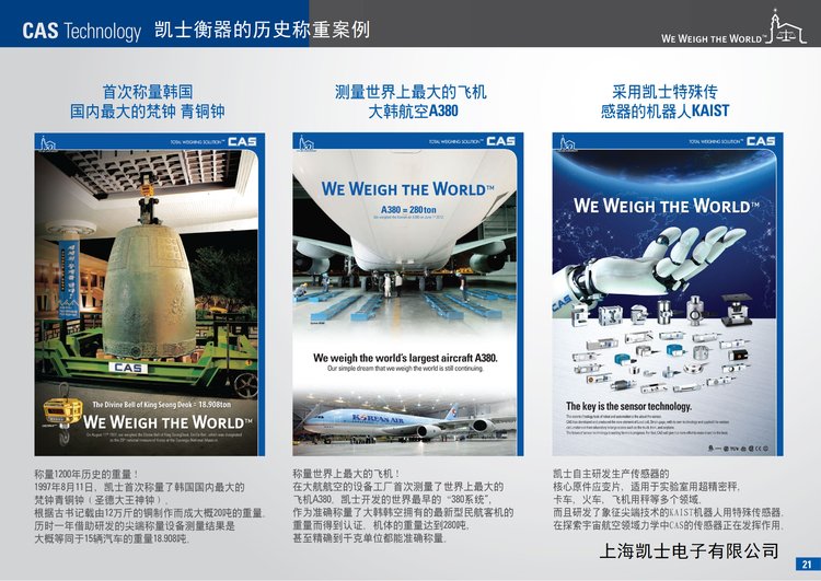 韩国CAS株式会社是韩国大的衡器企业,世界综合性衡器企业之一,中国衡器协会副理事单位,主要生产销售产品有:工业称重解决方案、零售业称重解决方案、实验室称重解决方案等等。致力于为客户提供称重技术在各种工业场合合理应用的解决方案。