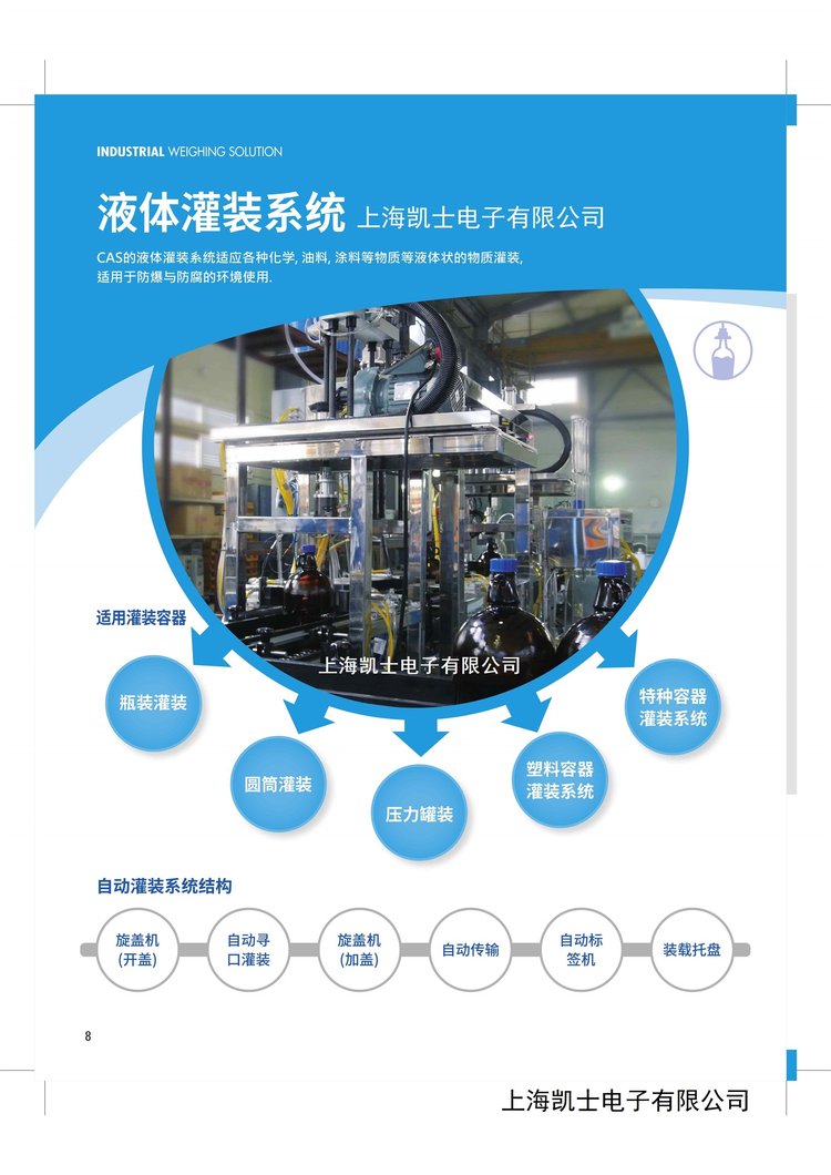 上海凯士电子有限公司是韩国CAS株式会社1994年在中国投资的独资公司。主营:全自动称重灌装机、半自动灌装机、自动压盖旋盖机、自动上盖机、贴标机输送设备、缠绕机、全自动包装机、自动包装码垛生产线、码垛机等各类成套灌装包装设备。欢迎新老用户来电洽谈~